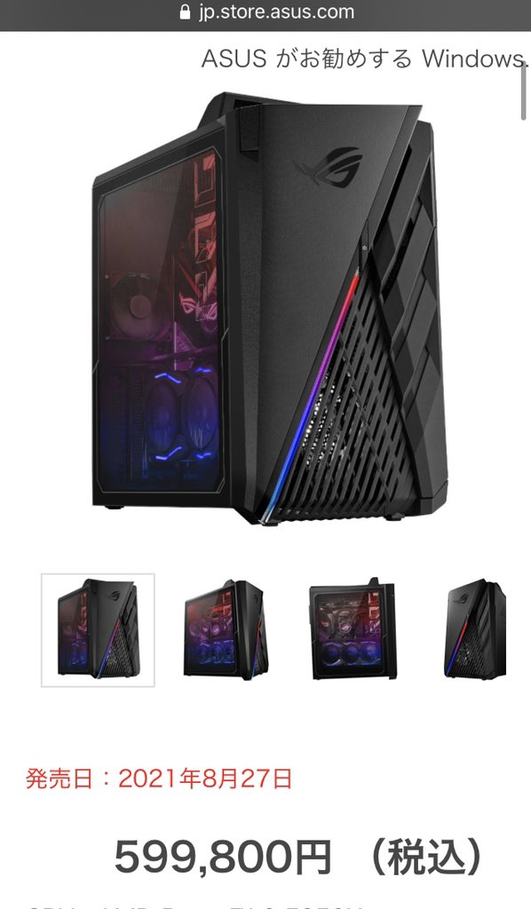 来週、ASUS公式ストアより2021年8月27日金曜日に新発売した、599,800円のゲーミングデスクトップPCを購入します。